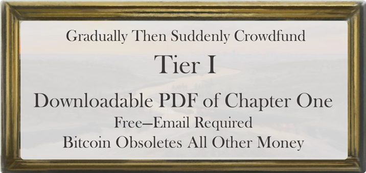 There's something for everyone–from a free download of the first chapter (Bitcoin Obsoletes All Other Money) to a signed edition of the hardcover, to a five pack bundle of the hardcover book (unsigned), to custom framed cover art and even the opportunity to get the author to personally help anyone you care about understand bitcoin from zero to one!