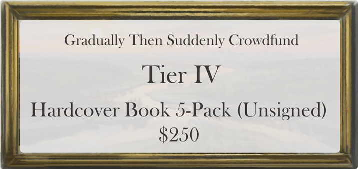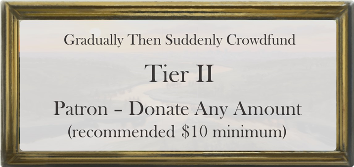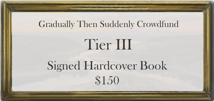 The print version of the Gradually, Then Suddenly book will be available the first half of October. Contribute to the crowdfund through one of the tiers below as a way to support the book and author, Parker Lewis.