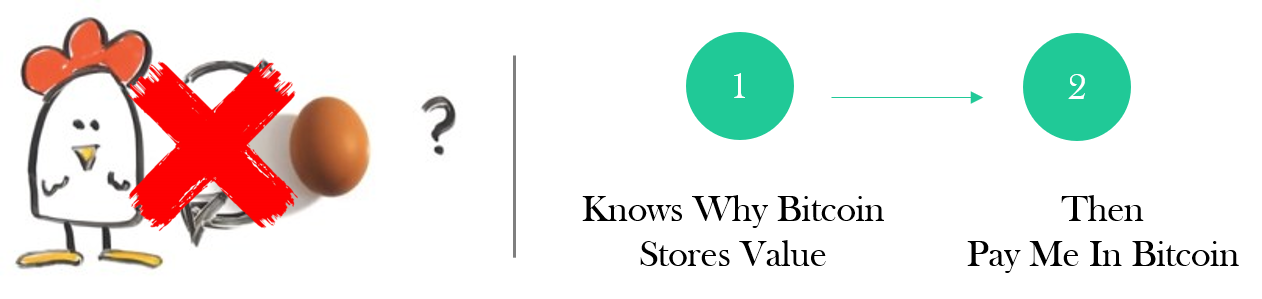 While it becomes logical and ultimately a more efficient path to acquire bitcoin, that doesn't mean that it's magically easier to accept bitcoin payments than fiat payments. If you are already set up to receive fiat payments and buy bitcoin, investing in infrastructure to receive bitcoin payments will require work, which means more work, by definition. And without doubt, there is friction beyond just getting set up to receive bitcoin as payment as a business or contractor–particularly for tax and accounting reasons. However, it becomes logical nonetheless, despite the perception of greater friction on the surface. If bitcoin acts as a better store of value, everything follows from that point.
